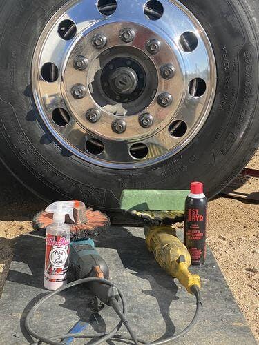 Pair the brake clean with one of our white microfibers. This method is one of the quickest ways to get prepped for polish. Give up on the days of acid washing your wheels. Just a simple detergent wash and some tar removal and you are ready to go. Using this method has helped us cut down on our prep times.