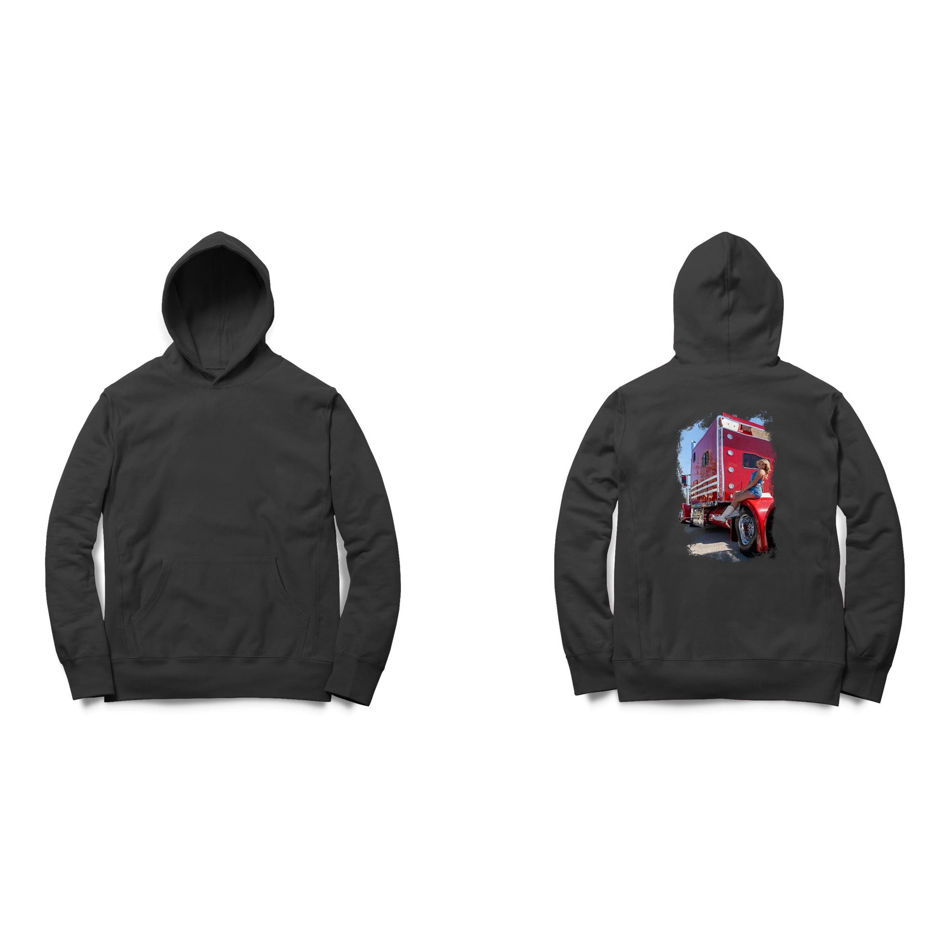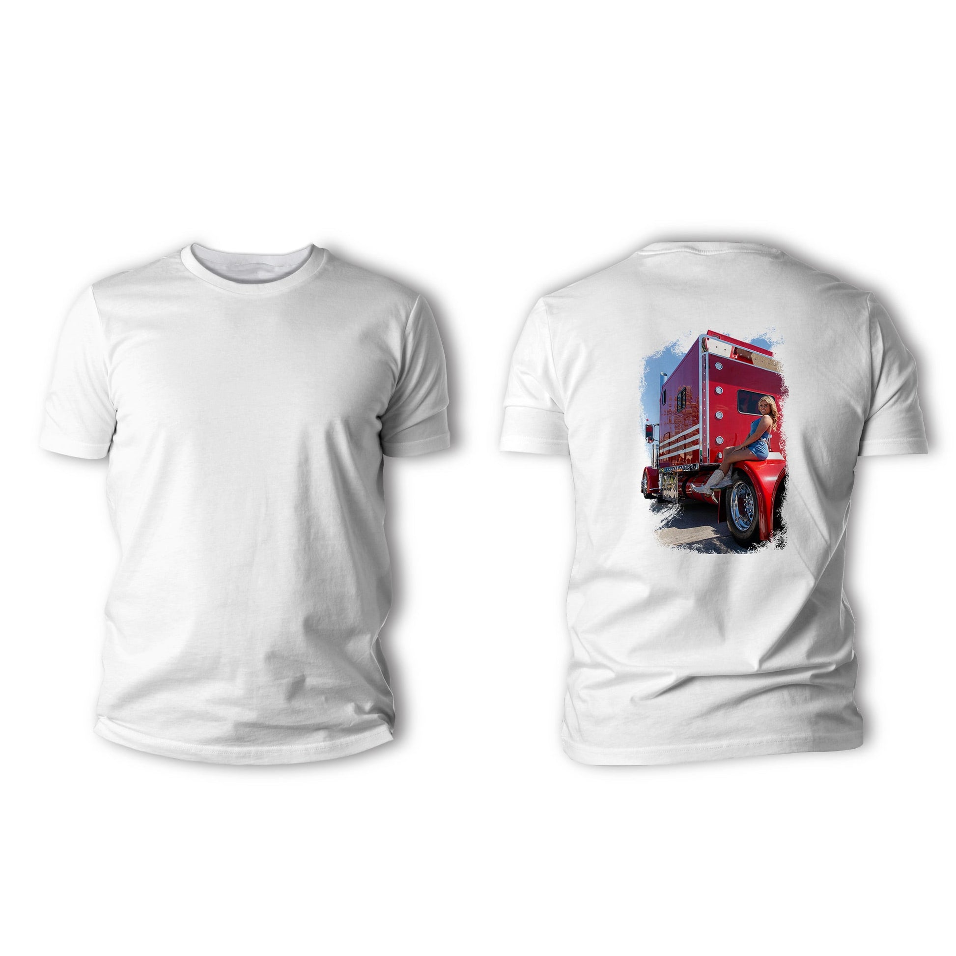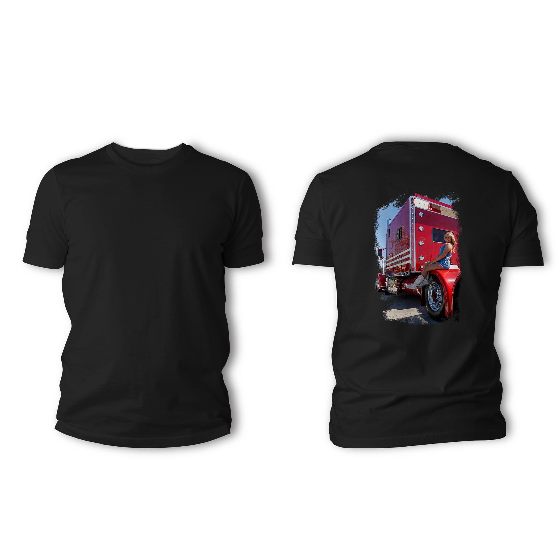 Sun, steel, and sass—Cowgirl Kenzie brings that rodeo-ready fire to the trucking world. With boots up and a relaxed lean against a fire-red rig, this design shows off Kenzie’s fearless spirit and country glam in full force. It’s the perfect match of cowgirl confidence and big rig power.