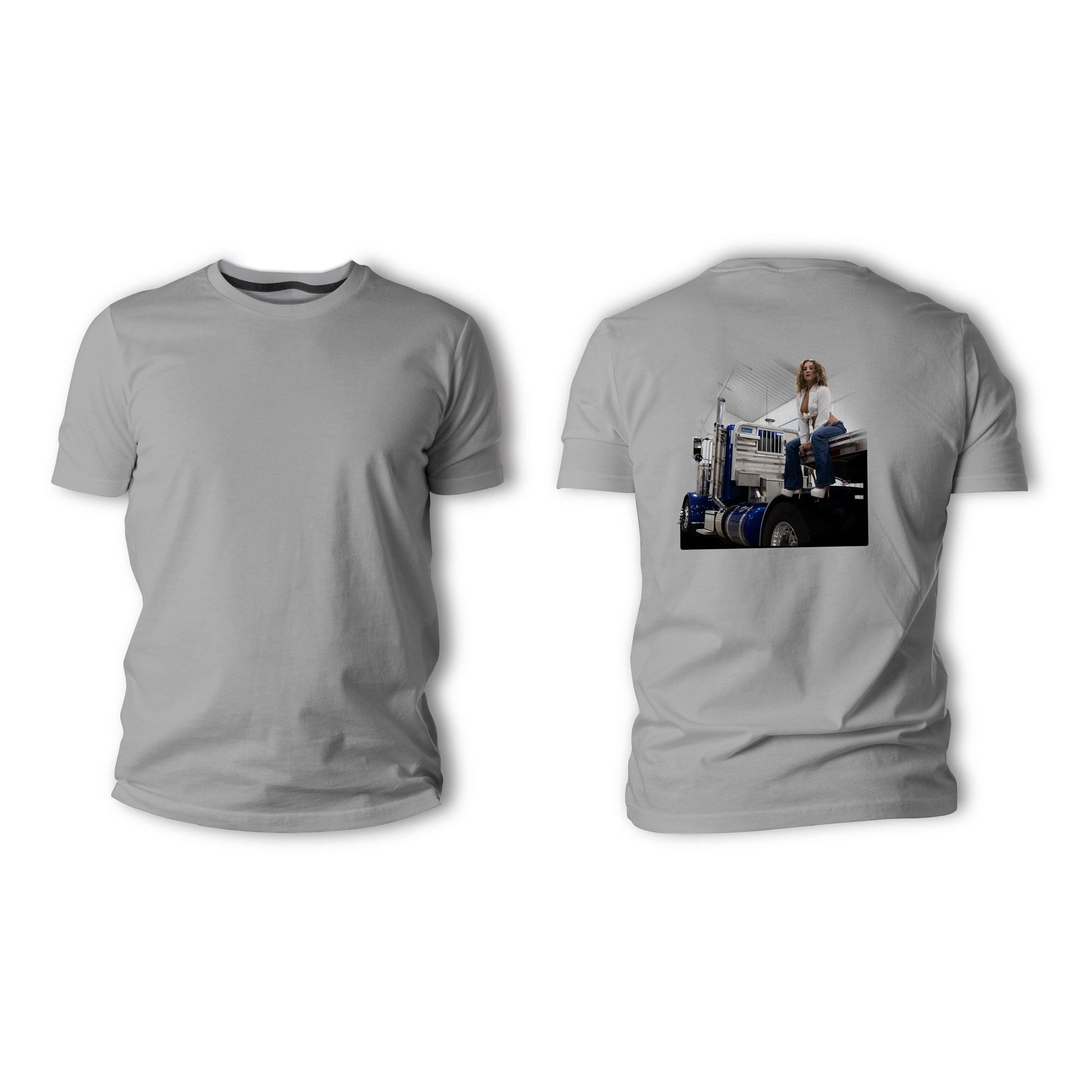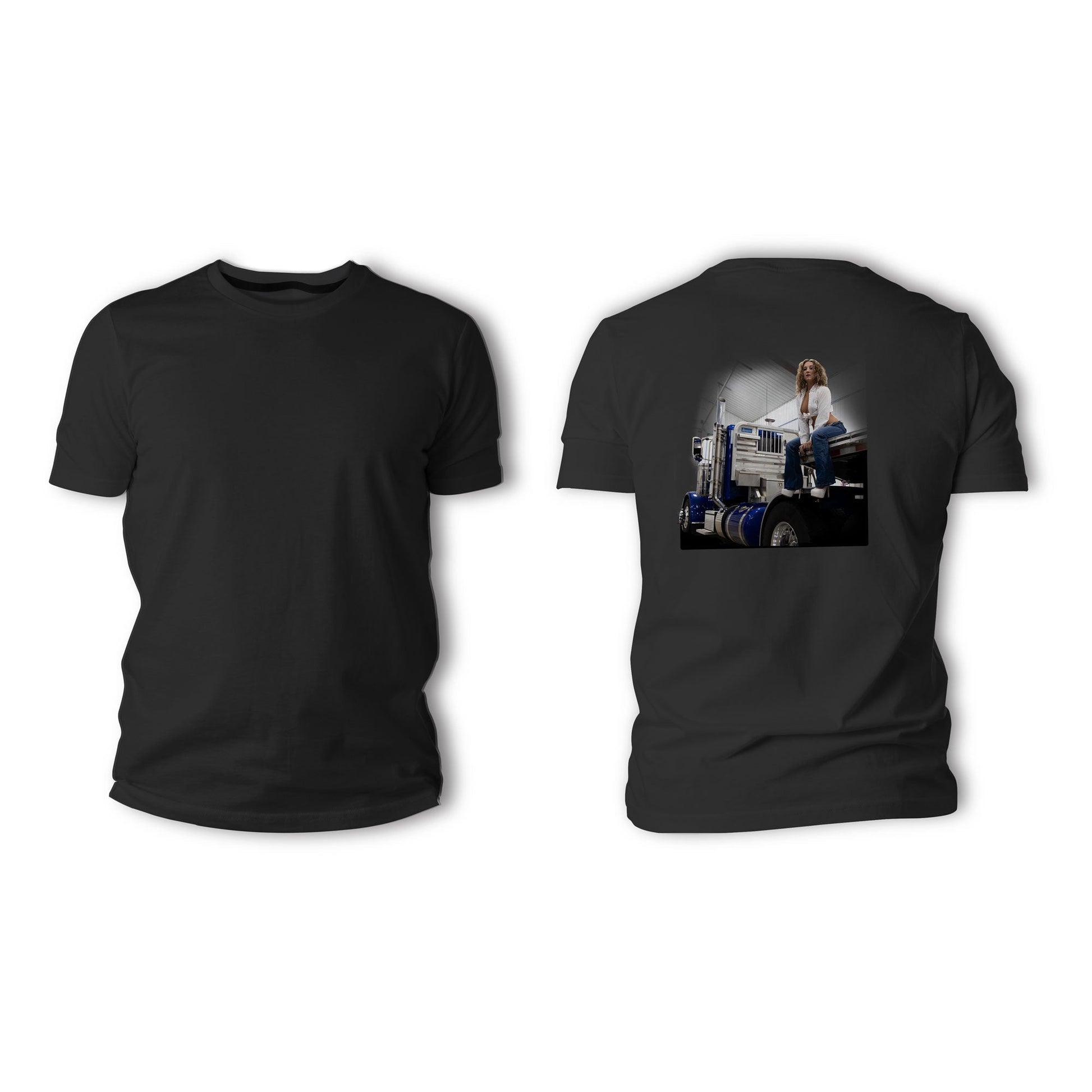Straightforward, no-nonsense, and ready to roll—Flat Bed Britt is all about power in simplicity. Set against a polished flatbed rig inside the shop, Britt leans casually with denim, curls, and cool confidence that says she belongs right where she is. This one speaks to classic truck culture with a modern, feminine edge.