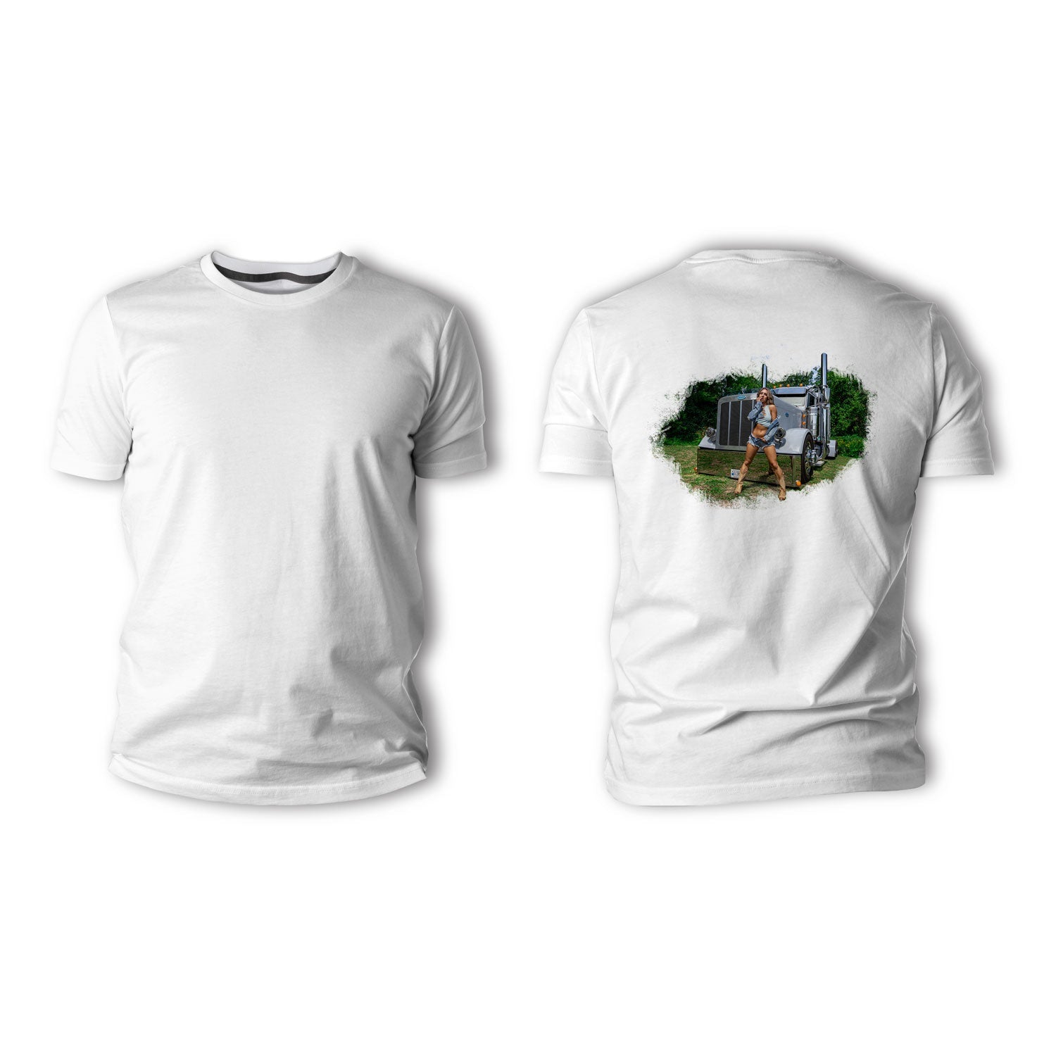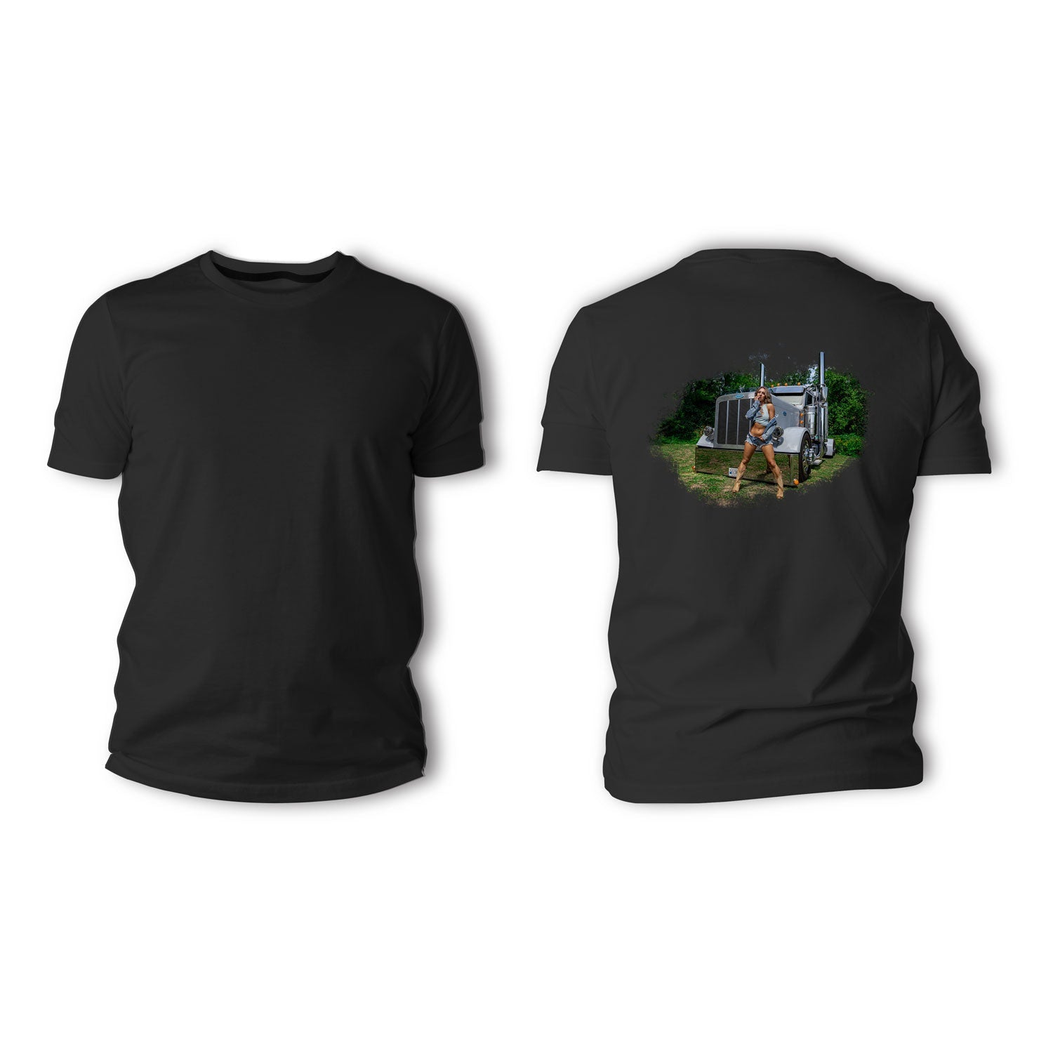 Grit meets glam in Nut N Fancy with Brit. Posing confidently in front of a polished rig owned by trucker Jason Justi, Brit brings attitude, athleticism, and undeniable charm to this outdoor scene. Surrounded by green and grounded in grit, it’s a perfect tribute to hard work, horsepower, and the strong women who keep it classy and badass.
