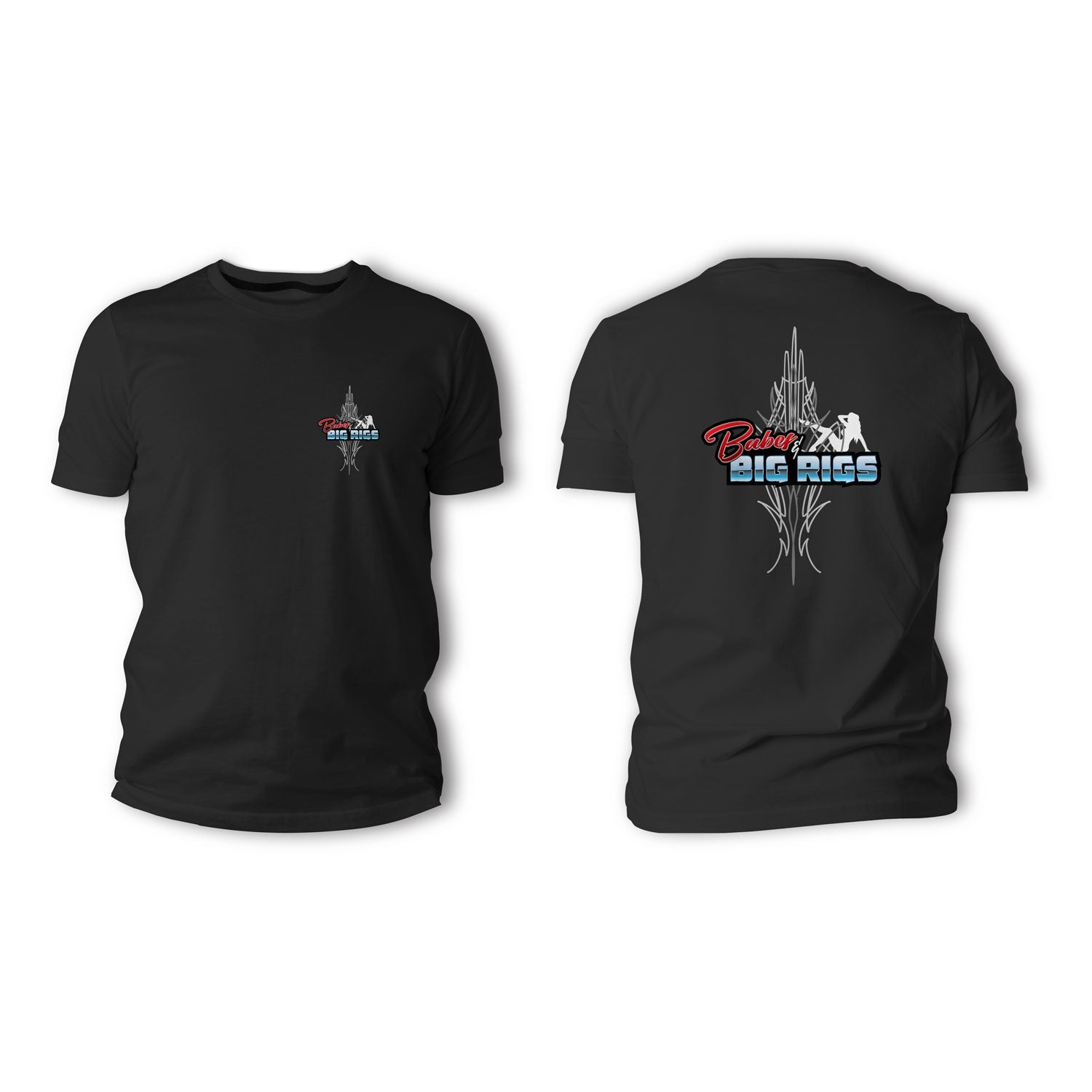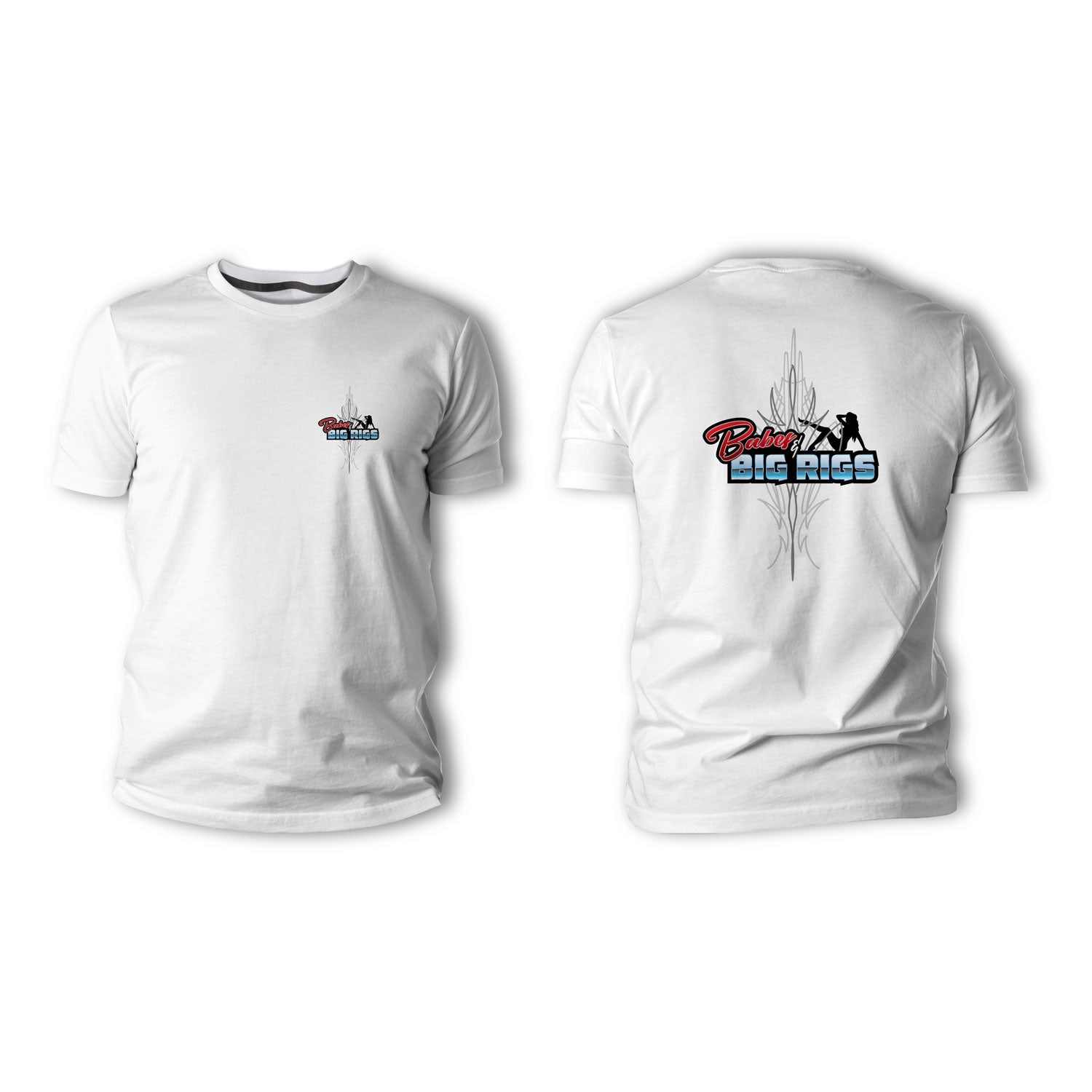 This sleek design by Josh of Rowan Conceptz captures the spirit of custom culture with sharp monochrome pinstriping and the Babes & Big Rigs logo front and center. Whether you’re trackside, truckin’, or just feelin’ the shine—this tee keeps it crisp.