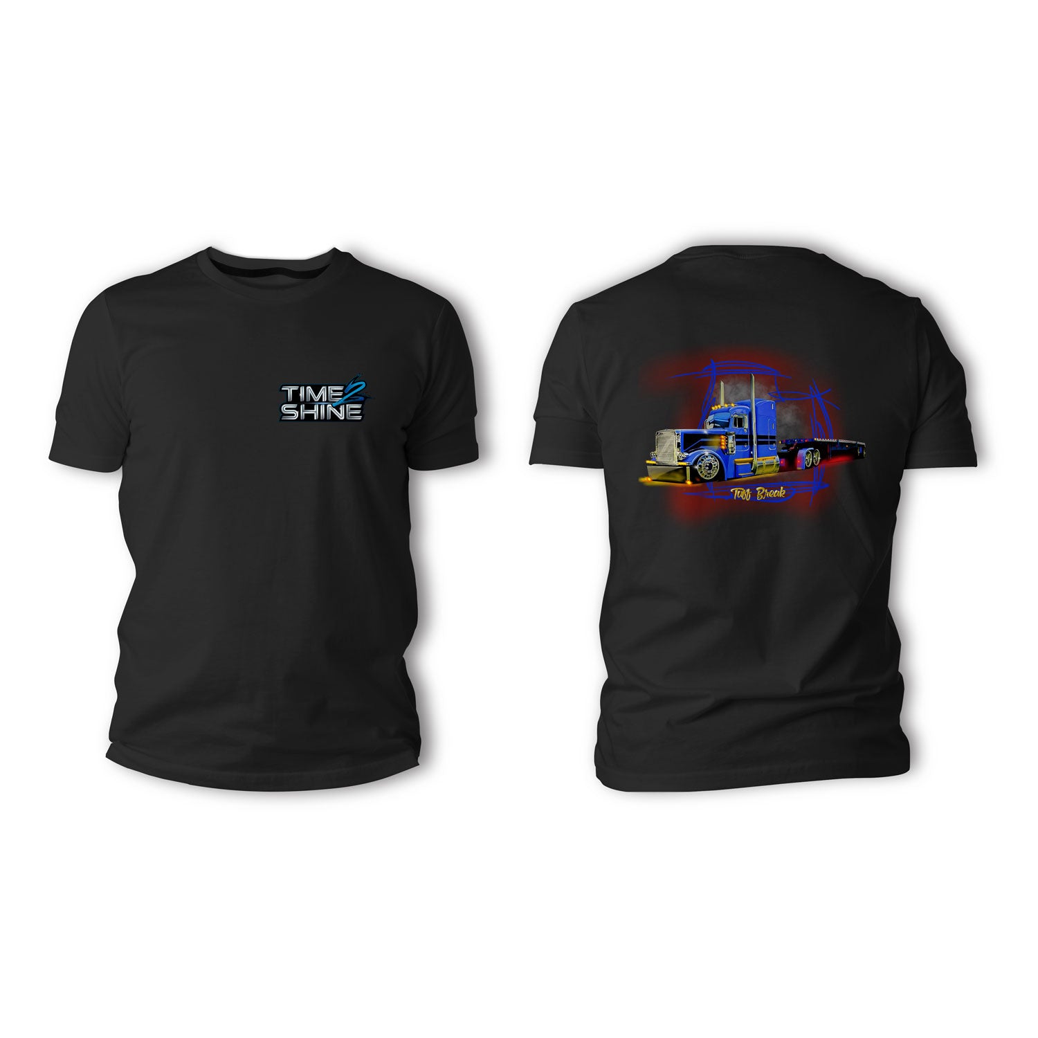 The Time2Shine logo hits clean on the front, while the back delivers a sketch-framed visual that’s all edge and no apologies.